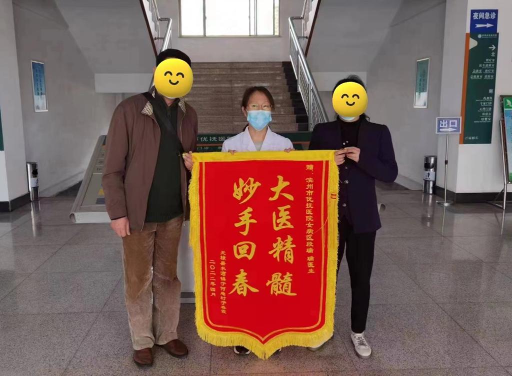 4月22日,于某某在家屬陪同下來(lái)到市優(yōu)撫醫(yī)院,將鐫有“大醫(yī)精髓,妙手回春”字樣的錦旗送到醫(yī)師段瑞瑞手中,表達(dá)感激之情。